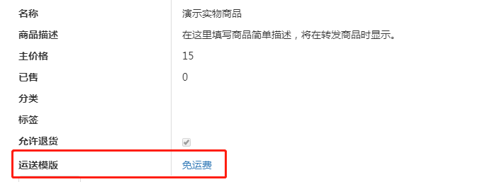 创建商品时,运送模板一栏显示默认设置为免运费;